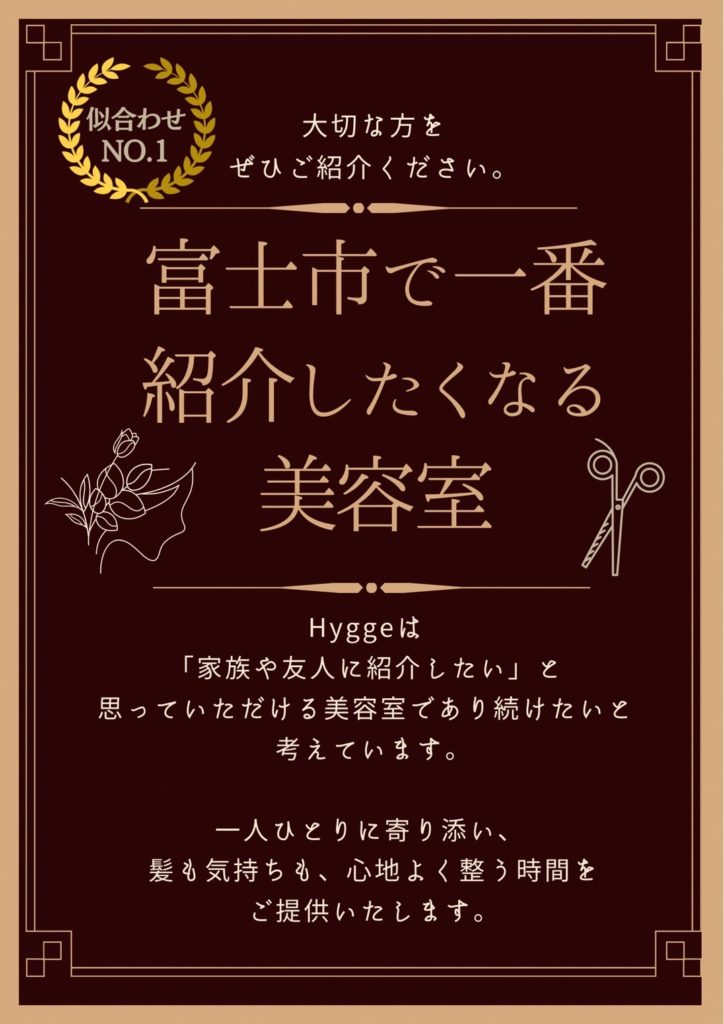 富士市松岡にある美容室 Hygge~ヒュッゲ~。