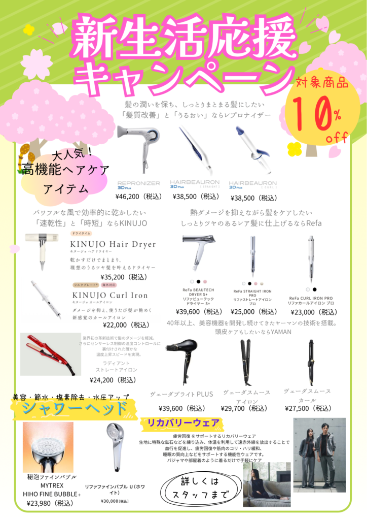 🌸春の新生活応援キャンペーン🌸 2026 2/20 お知らせ 2026年2月20日 こんにちはHyggeです😊🌸 新生活応援📣キャンペーン開催中!!! リュミエリーナ、リファ、キヌージョ 気になっていた美容家電などなど… この機会にぜひご購入ください! お知らせ よかったらシェアしてね! URLをコピーしました! URLをコピーしました! 学生限定まつぱキャンペーン 🌸脱高校生!🌸レディースメニュー 関連記事 Hygge春の新生活応援キャンペーン 2026年2月20日 🌸脱!高校生キャンペーン🌸(メンズメニュー) 2026年2月20日 🌸脱高校生!🌸レディースメニュー 2026年2月20日 学生限定まつぱキャンペーン 2026年1月14日 ご紹介キャンペーンのお知らせ 2026年1月8日 ✨ビューティーチケット予約開始✨ 2025年11月30日 はじめての振袖選びを しっかりとお手伝いします! 2025年11月30日 今年も【とらふぐだし】人気です🐡 2025年11月14日